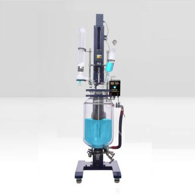 本機具(jù)有電動恒速攪拌係統、冷凝、滴加係統,釜體夾層(céng)需外接加熱或製冷的循環設備。在攪拌物料的同時,通過夾層注入循環的熱溶液或冷卻液(yè),對釜內的物料進行恒溫的加熱或製冷。物(wù)料進行加熱反應(yīng)時(shí),在真空條件下可以提高蒸發效率(需連接真空裝置),溶媒蒸汽經(jīng)玻璃冷凝盤管時冷卻成液體(需連接冷卻裝(zhuāng)置),可回流到釜內,也可通過回流彎(wān)頭下(xià)部閥門進行回收。反應完畢,物(wù)料可從釜底的側出料口放出。